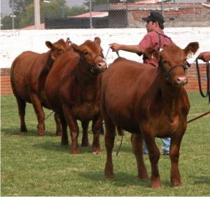 Para la decisión de la Gran Campeona Nacional Angus Colorada Morelia 2005, las dos hembras de la derecha son de Mezquite Genética |